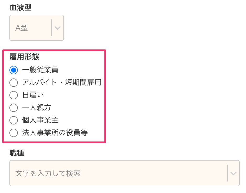 [基本情報]内にある雇用形態の登録項目を確認します。