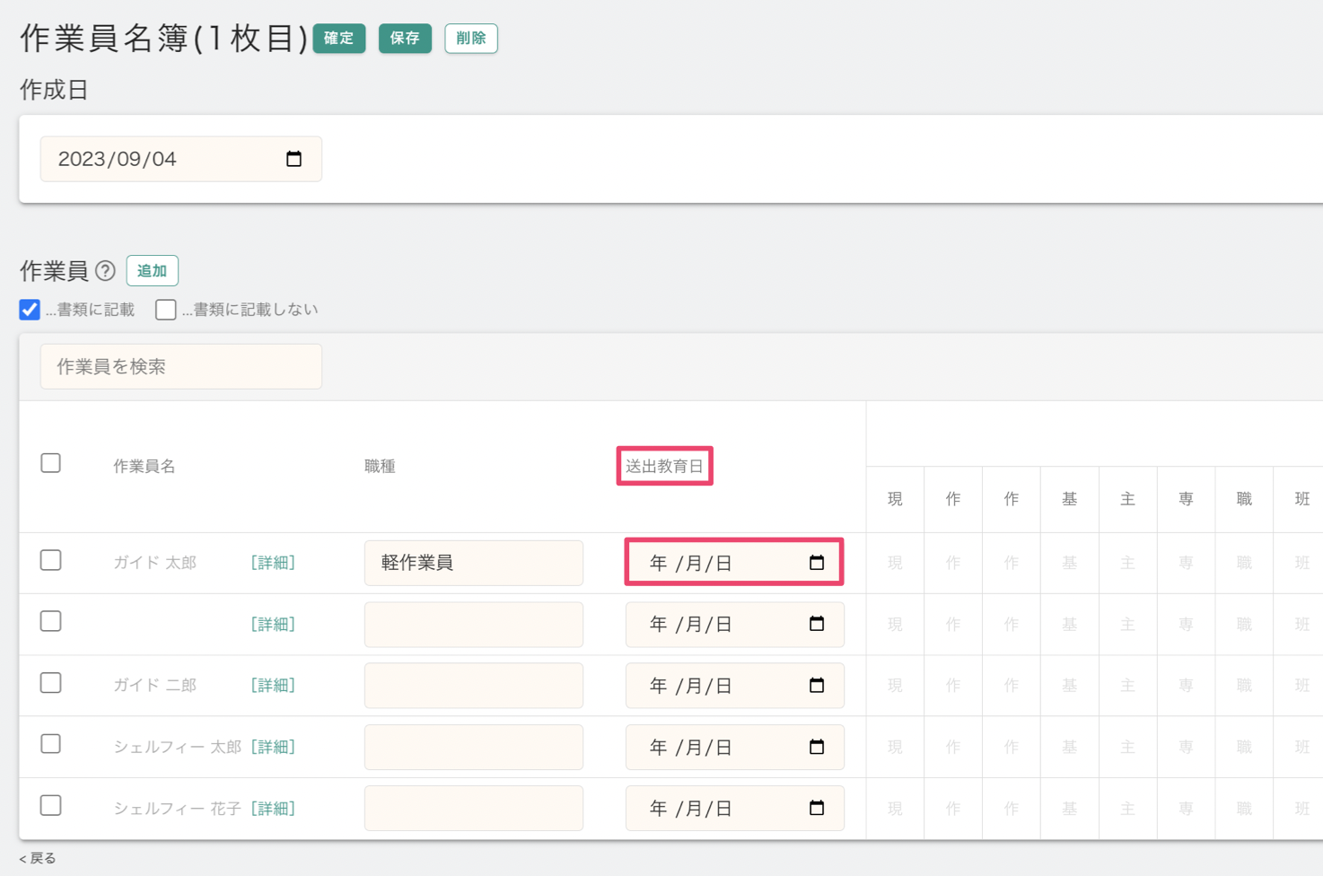 従業員ごとに送出教育を実施する日を入力後、[保存]をクリックします。