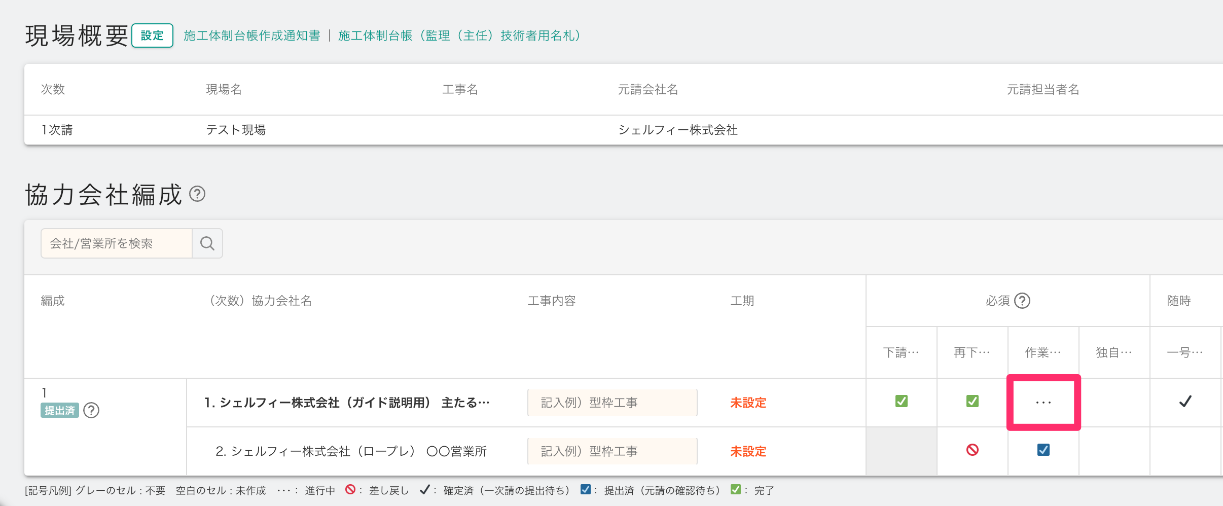 安全書類ポータルへの移動方法は、現場ポータル・安全書類ポータルから、組織ポータルページへの戻り方を参照してください。