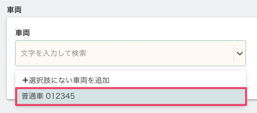 安全書類の場合は車両届の作成画面で、すでに登録をした車両が選択肢に出てくるため、選ぶだけで書類作成を進めることができます。