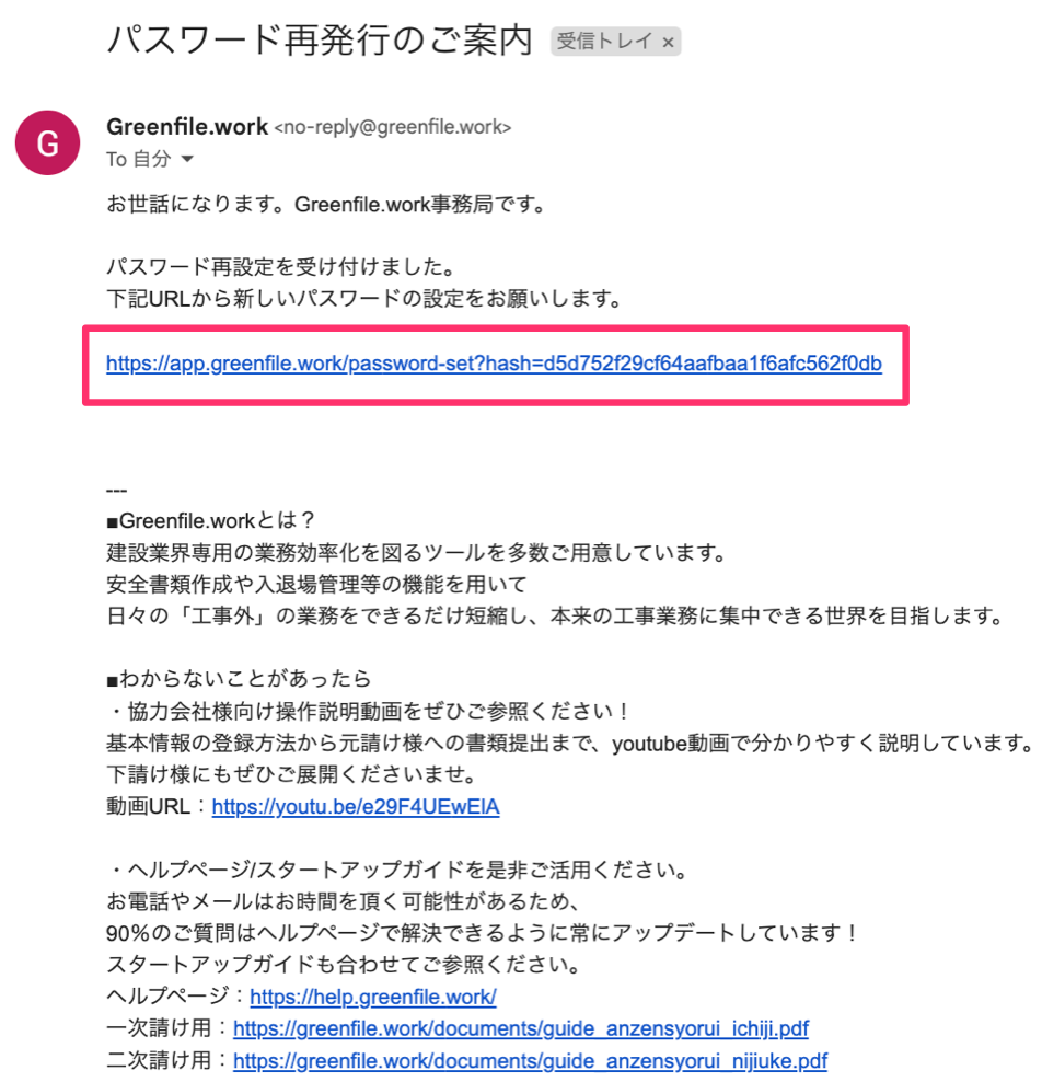 メール本文にパスワード再設定用のURLが記載されていますので、