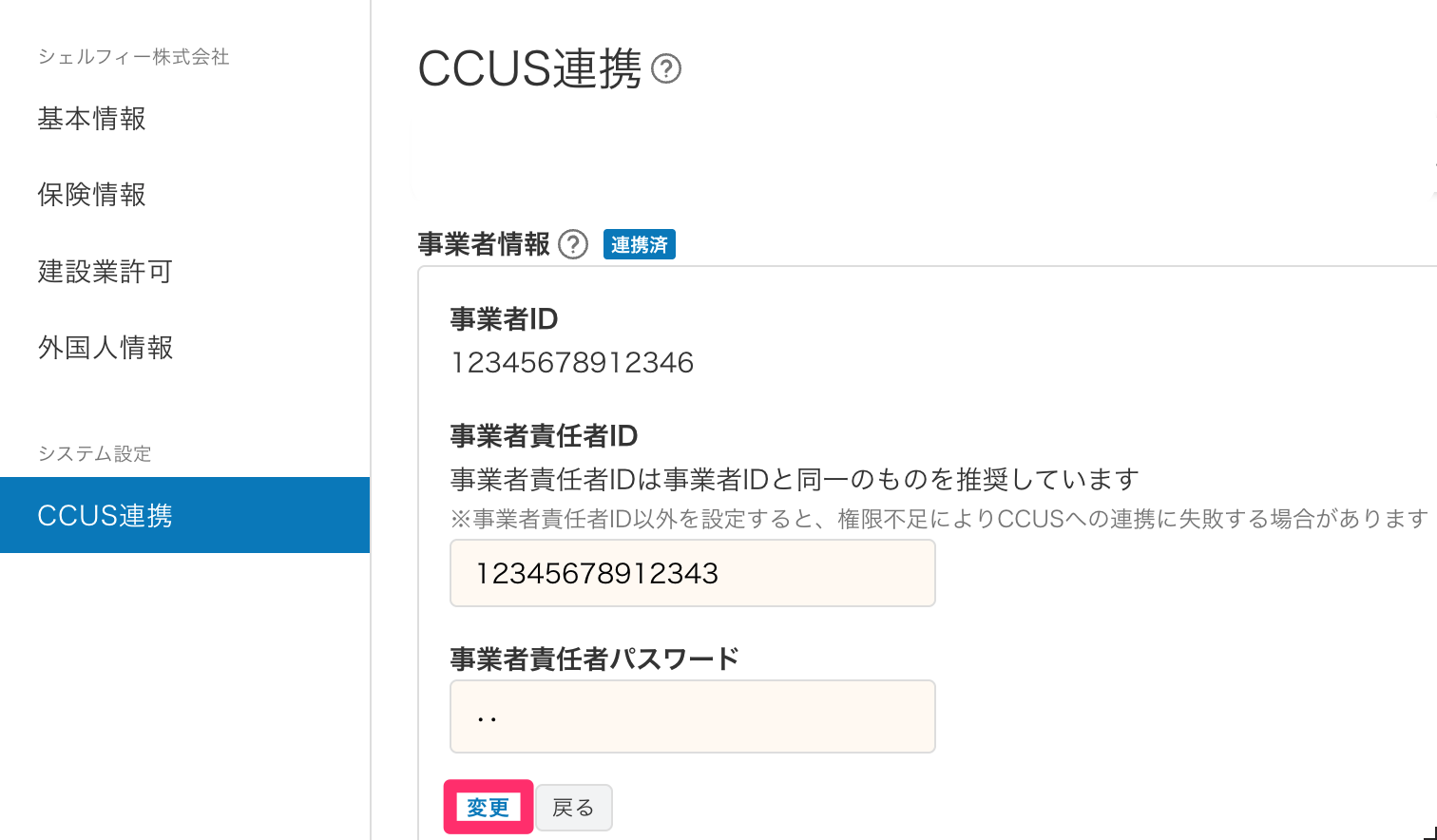 CCUS側で事業者責任者IDまたはパスワードを変更した場合は、