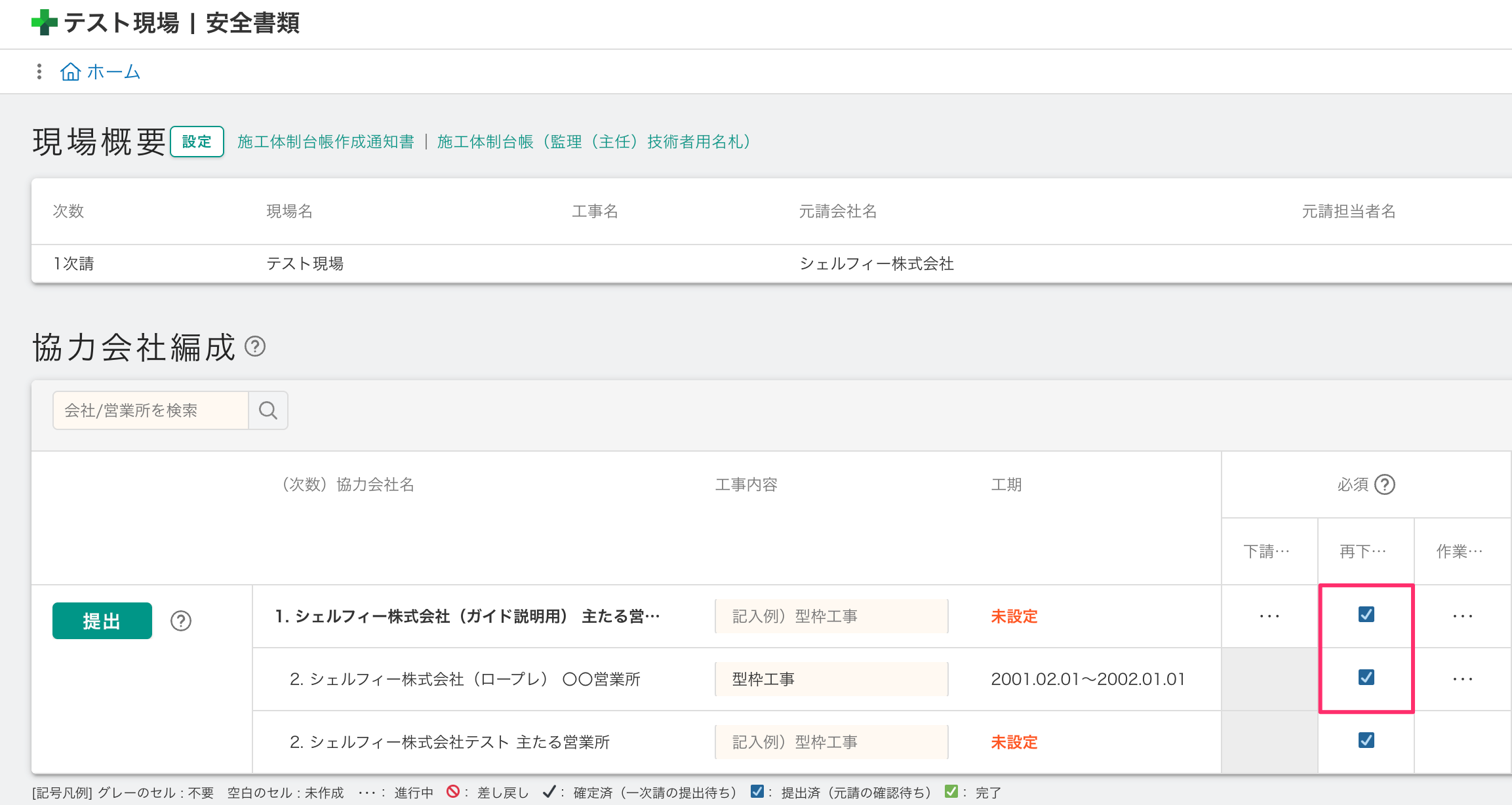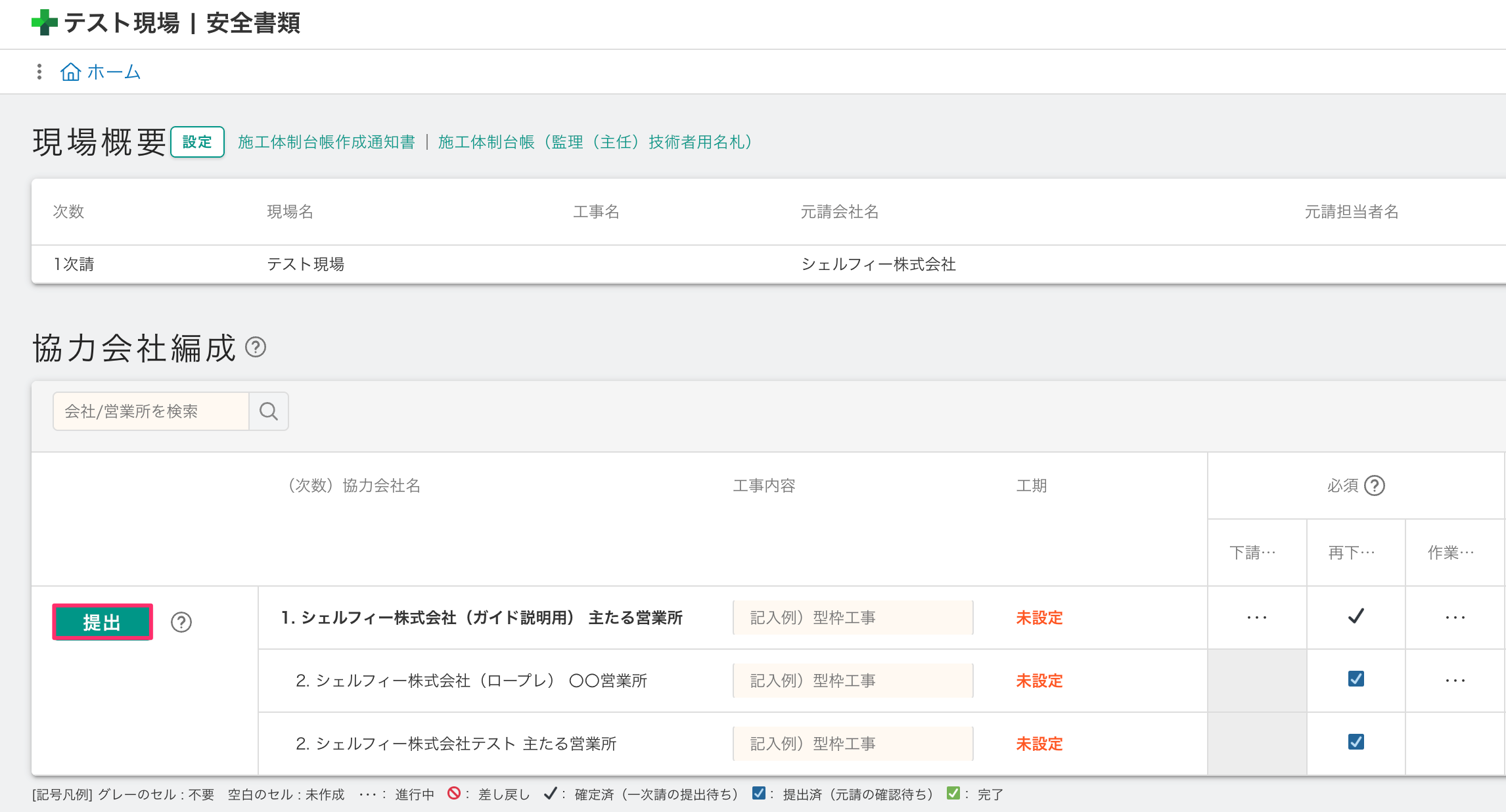 提出の操作は、1次請企業がまとめて提出を行ないます。