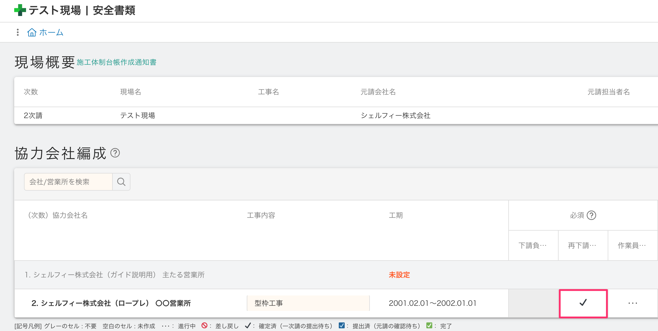 安全書類の提出は、1次請企業のみが行なう操作です。
