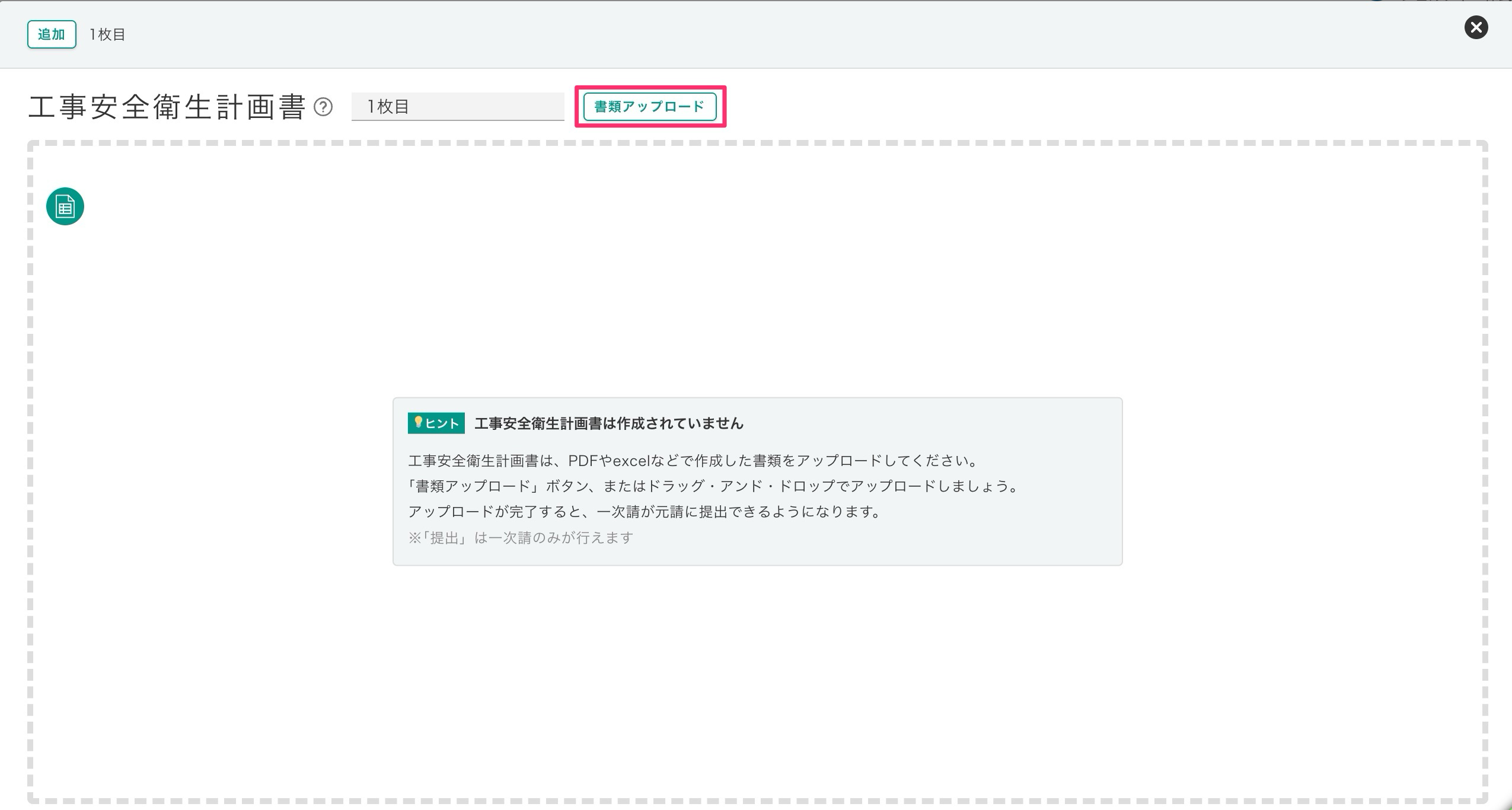 [書類アップロード]から、添付する書類をアップロードします。