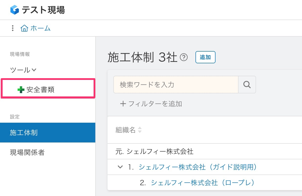1.[現場]>{現場名}をクリック