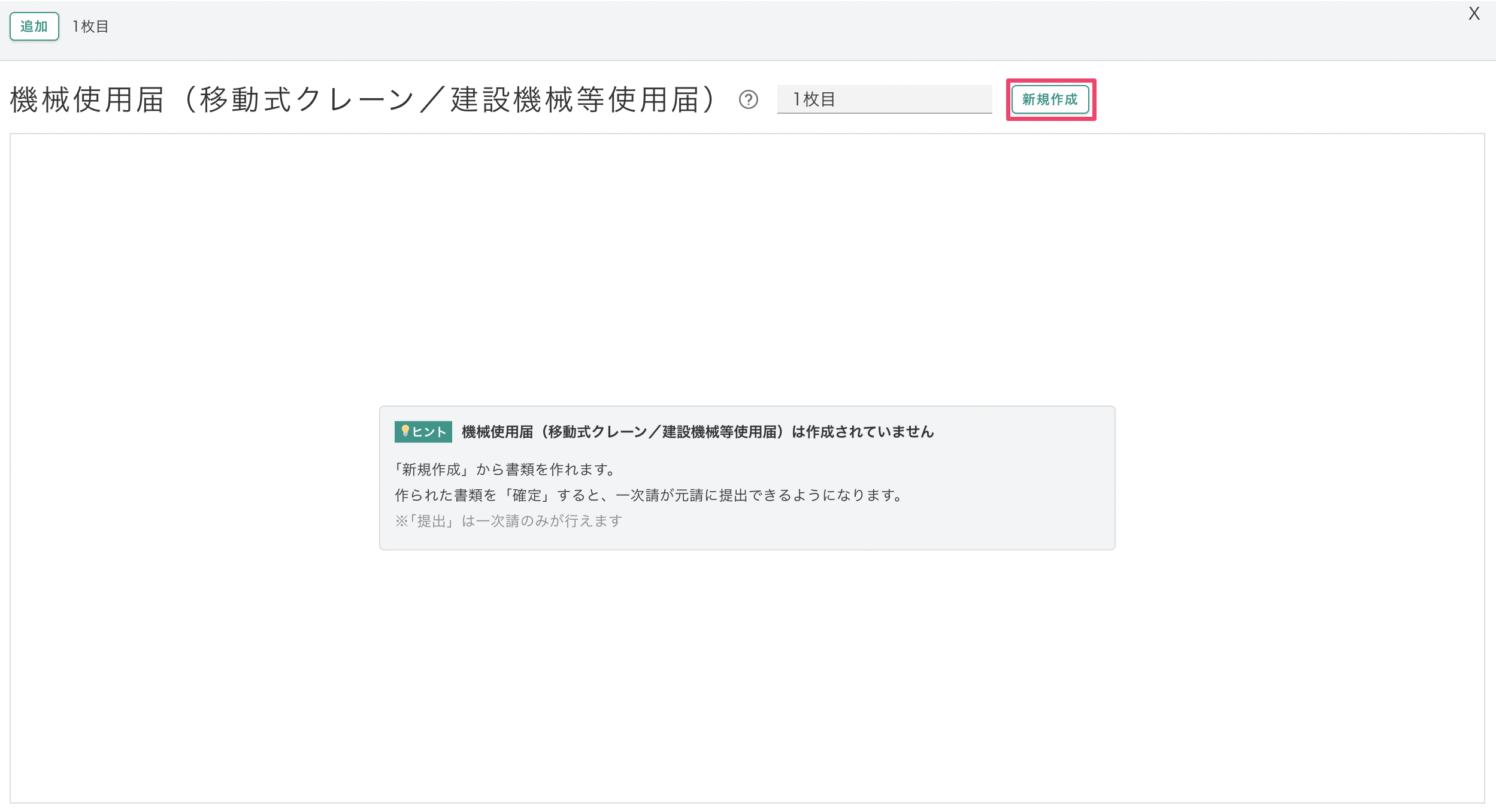 1.安全書類>[機械使用届]をクリック