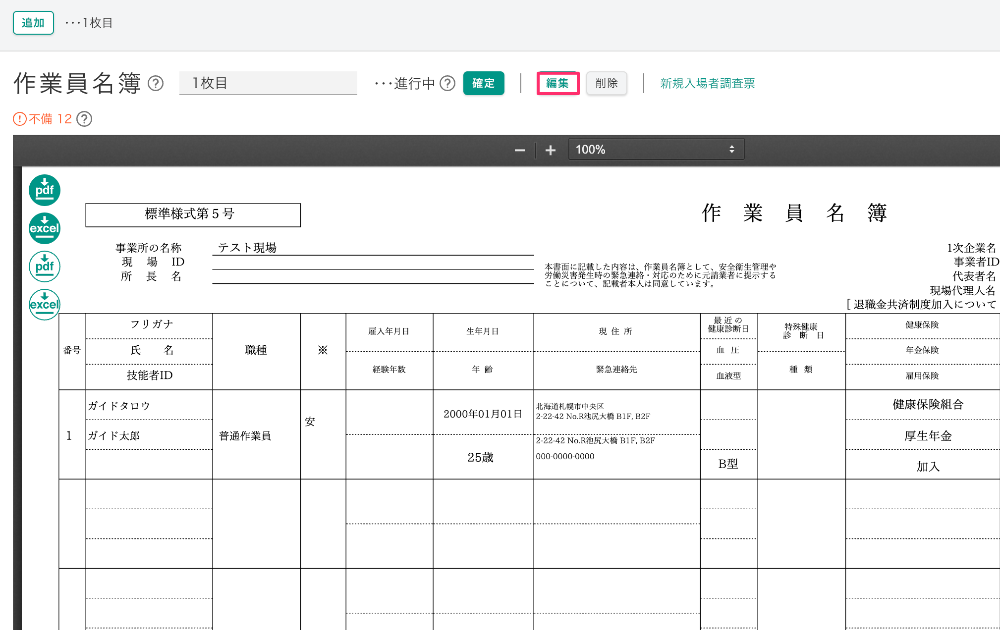 作業員名簿の編集にて、それぞれの作業員の情報を編集する方法を説明します。