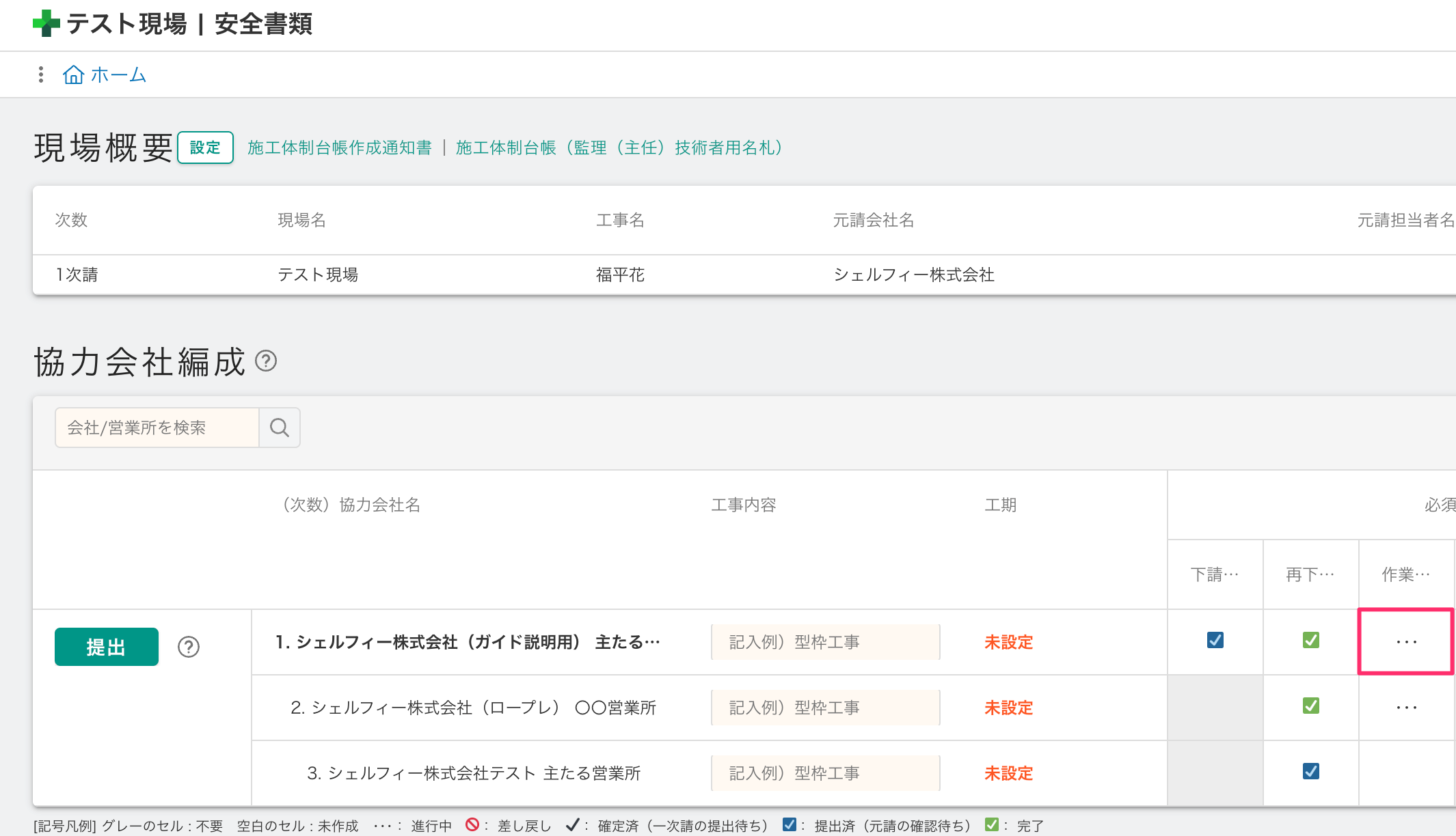 安全書類ポータルへの移動方法は各ポータルページへの移動方法を参照してください。