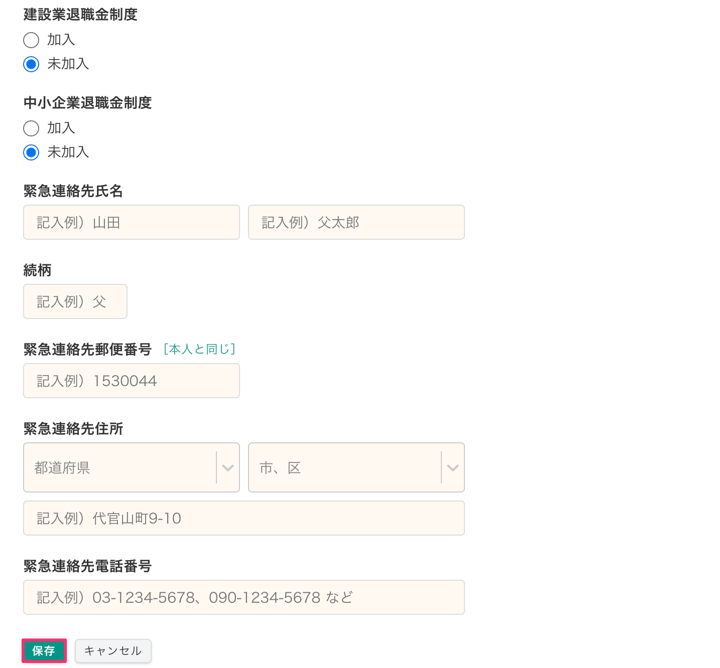 各項目を入力後、画面を下にスクロールして[保存]をクリックすると、作業員の情報が更新され、