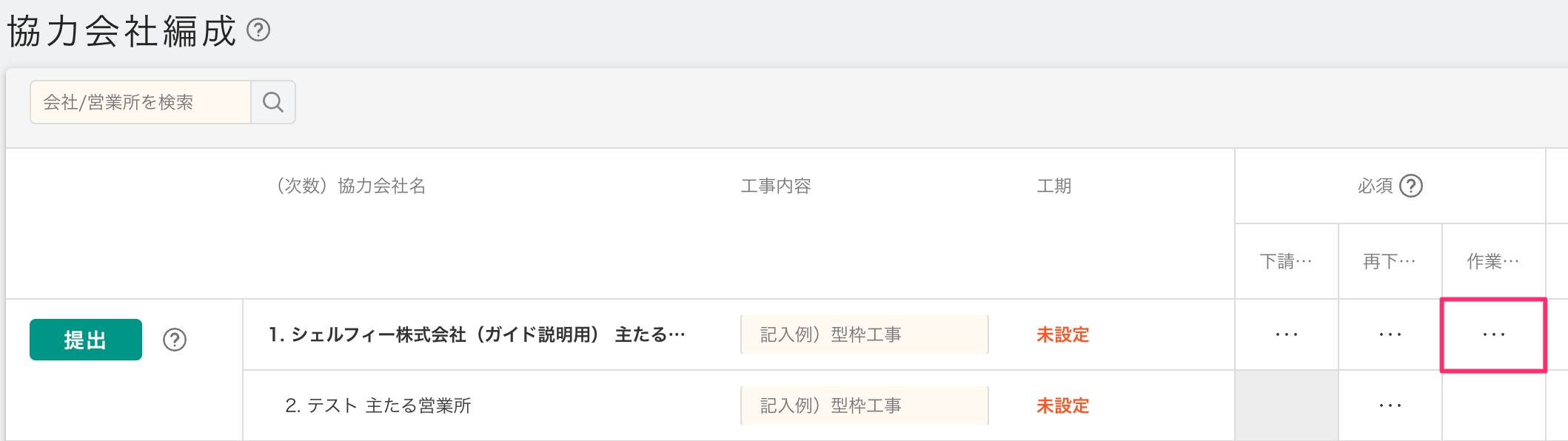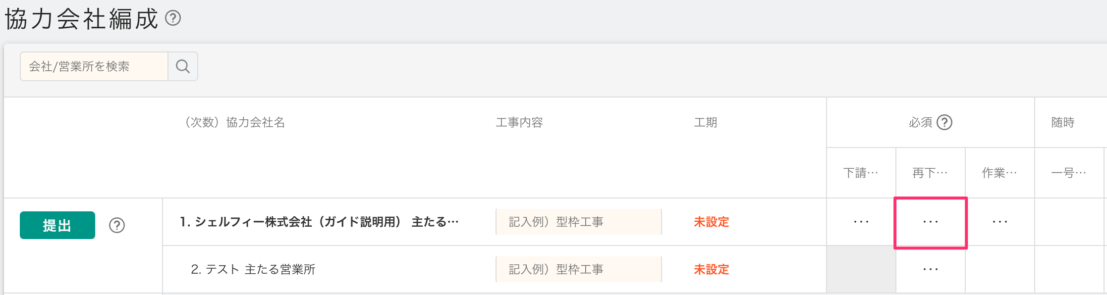 ここからは、請負関係にある協力会社の情報を入力していきます。
