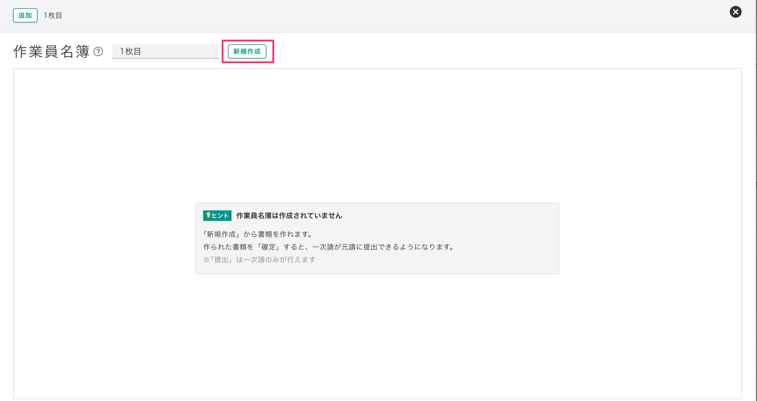 既に作業員名簿が作成されている場合、こちらの画面が表示されます。
