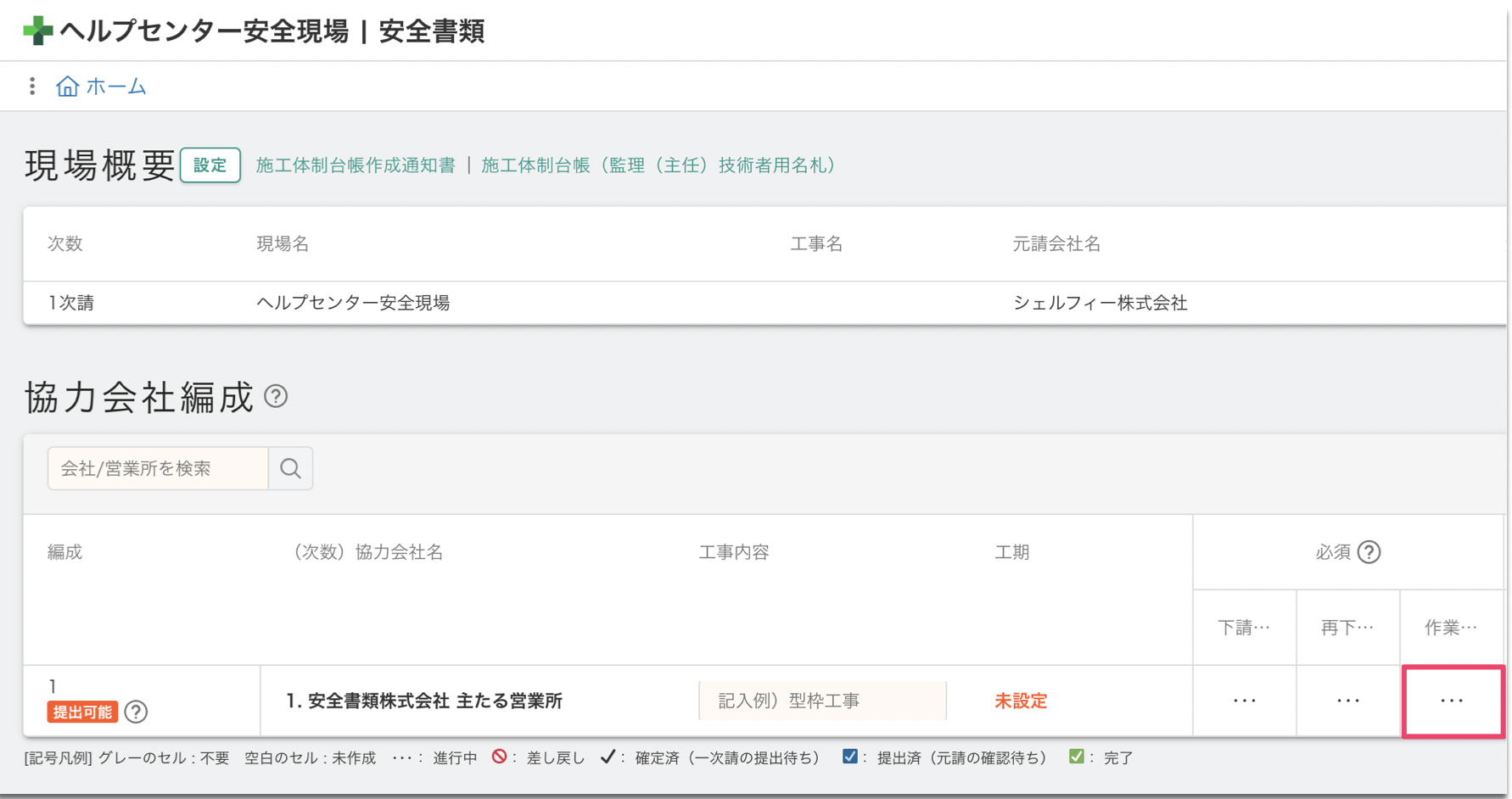 安全書類ポータルへの移動方法は現場ポータル・安全書類ポータルから、組織ポータルページへの戻り方を参照してください。
