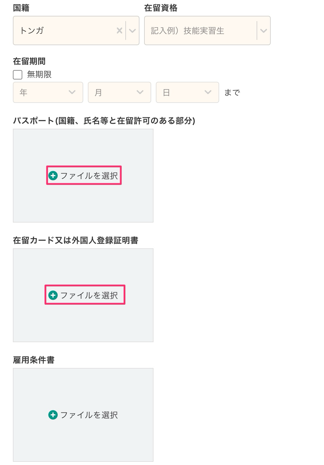 [保存]をクリックすると、外国人従業員のファイル添付が完了です。