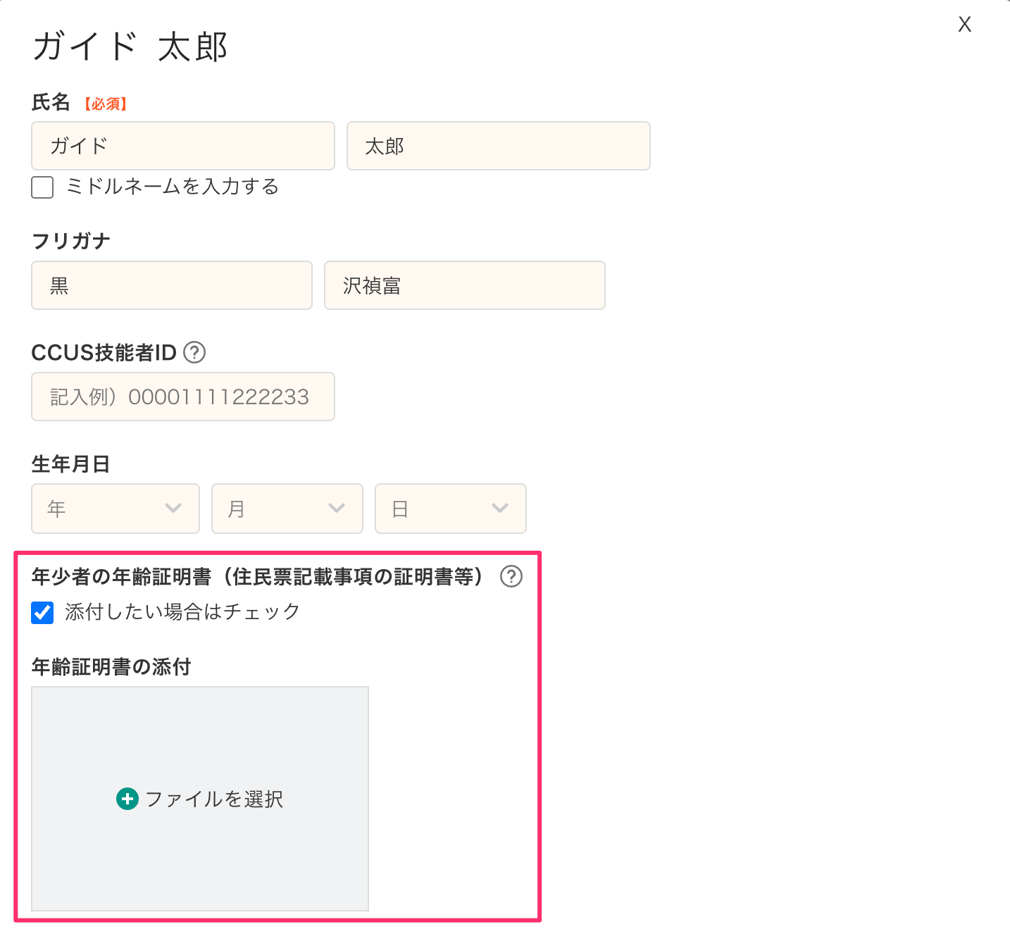 Greenfile.workでは、年齢証明書は作業員名簿から添付することができます。